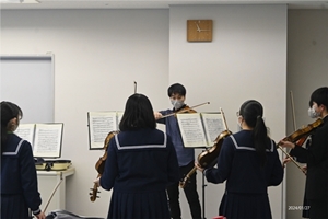 公演の一環として、諏訪地域の中学生を対象に、新日本フィルハーモニー交響楽団のメンバーによる楽器演奏